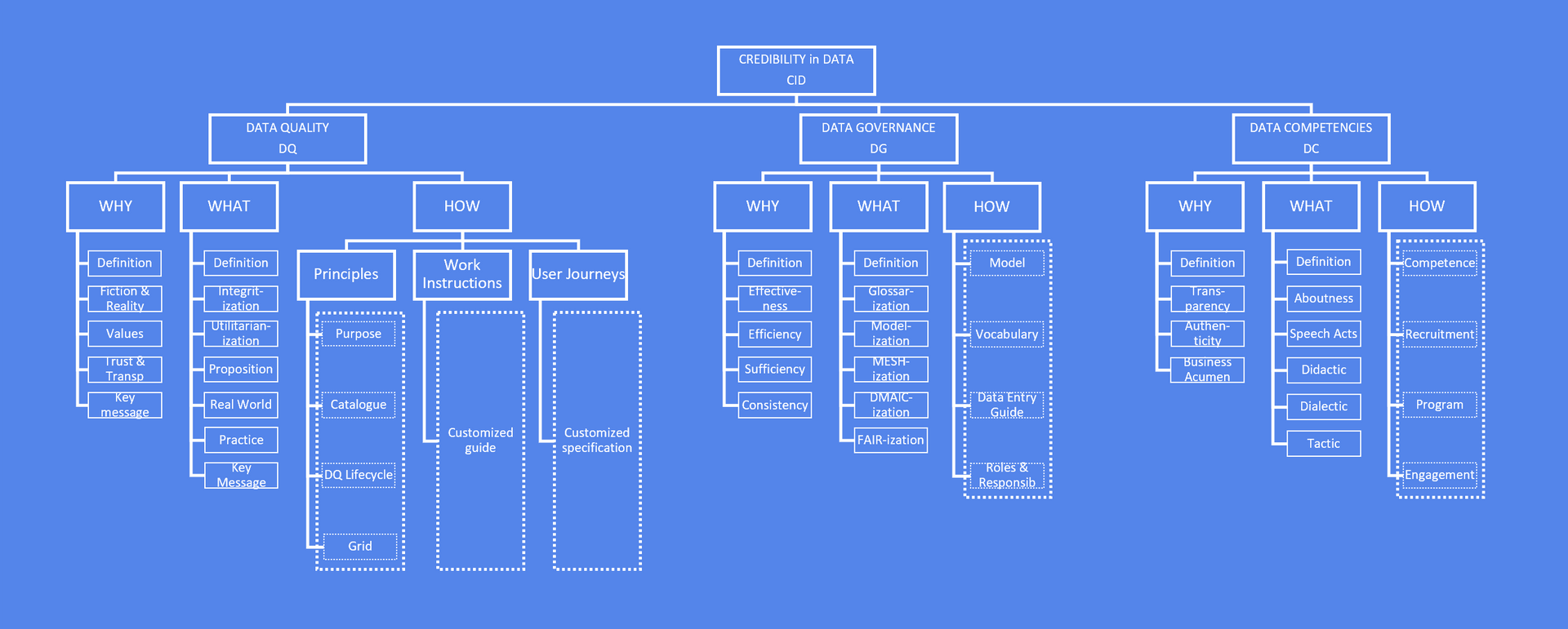 - The 3 CID capabilities DQ, DG, and DC make credibility in data possible at all. While DQ and DG are equilibrial in dose and organization, DC establish mutual recognition / acknowledgement between data stakeholders and their customers.