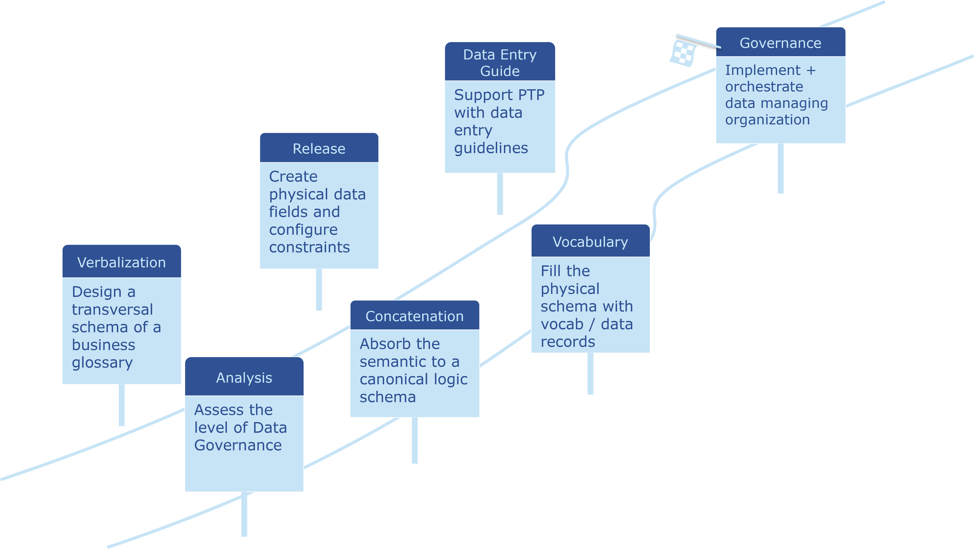 Adjustments are sustained by glossarization, modelization, meshization, DMAICization, and FAIRification.
