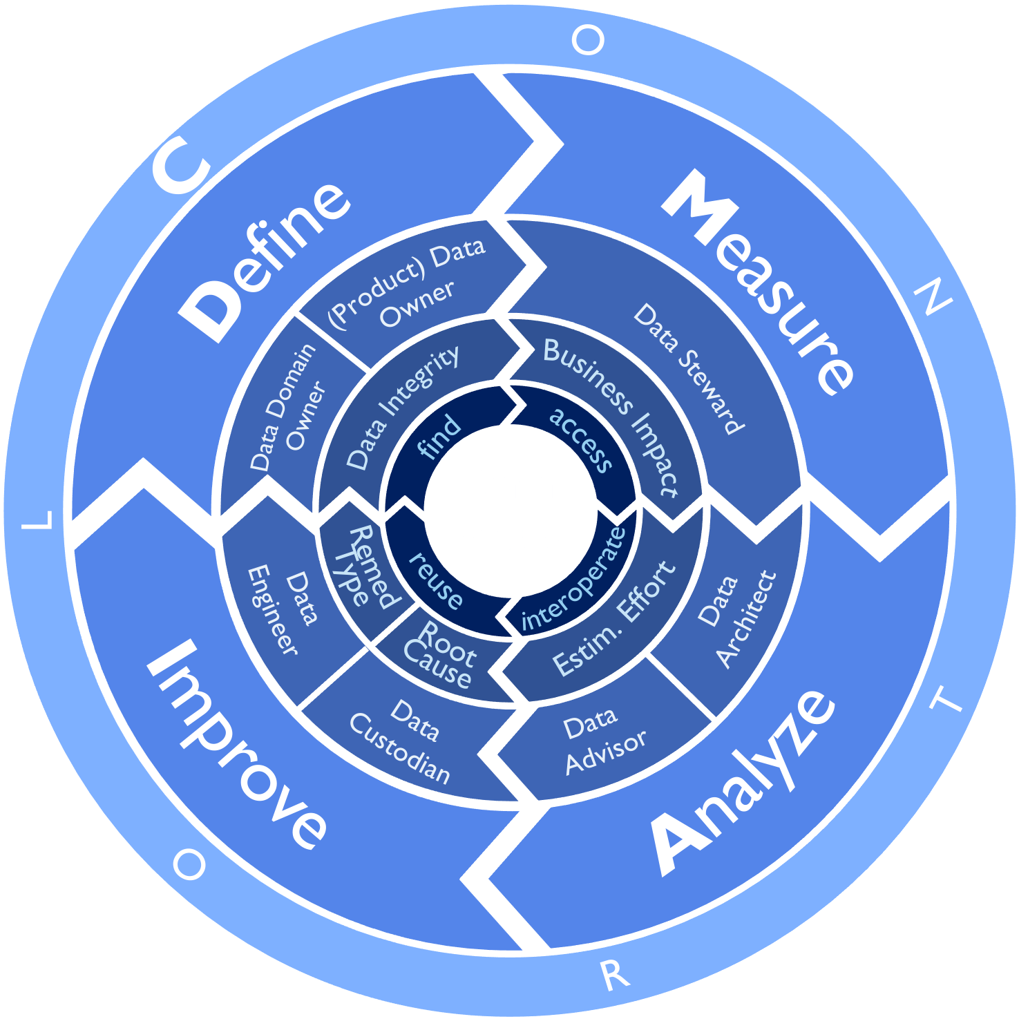 DMAIC is the preferred DQ Lifecycle Improvement Process that is prominently used in the SixSigma methodology. DMAIC stands for the phases Define, Measure, Analyze, Improve, and Control. DMAIC generates methods for an incremental improvement of qualities.